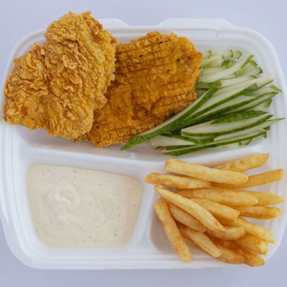 Удобный ланч-бокс с двумя сочными чикен-стейками, ароматным соусом ранч, свежими огурцами и хрустящим картофелем фри. Идеальный набор для сытного обеда на ходу — вкусно и удобно