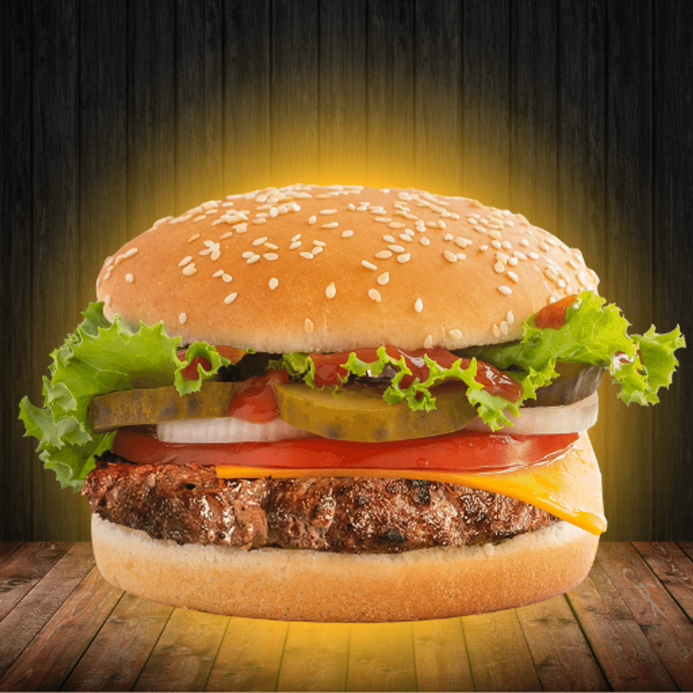 Сочная говяжья котлета, расплавленный сыр, маринованные огурцы, свежие помидоры и воздушная булочка с фирменным соусом — всё, что нужно для идеального бургера
